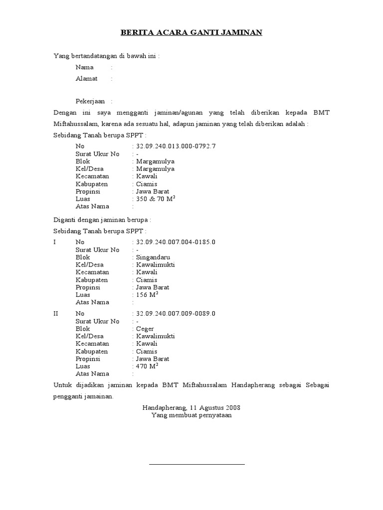 Maybe you would like to learn more about one of these? Contoh surat pernyataan jaminan bpkb. We did not find results for: Check spelling or type a new query.